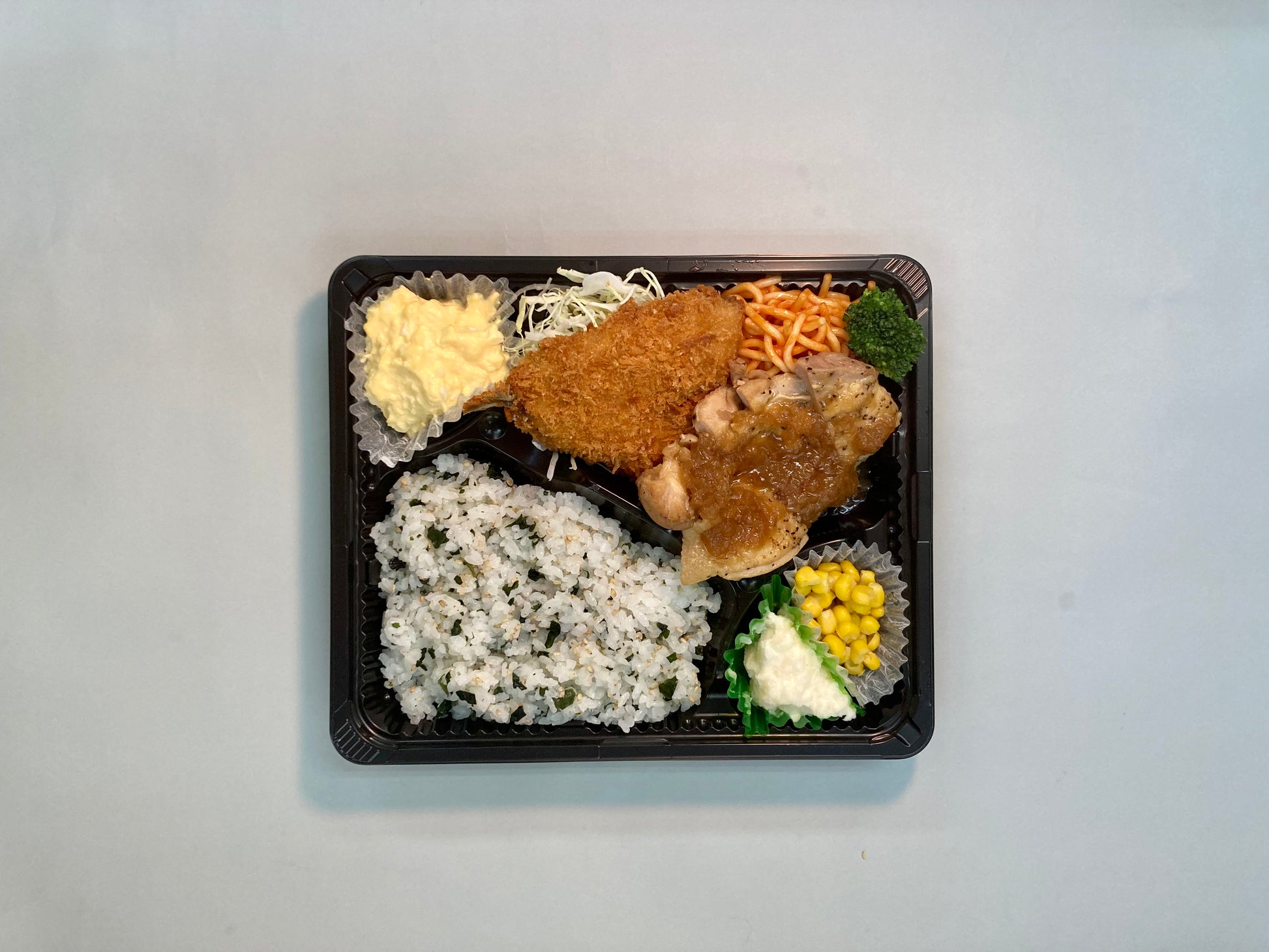 こんがり焼き上げた鶏肉とカラッと揚げたアジフライを卵タルタルソースで!